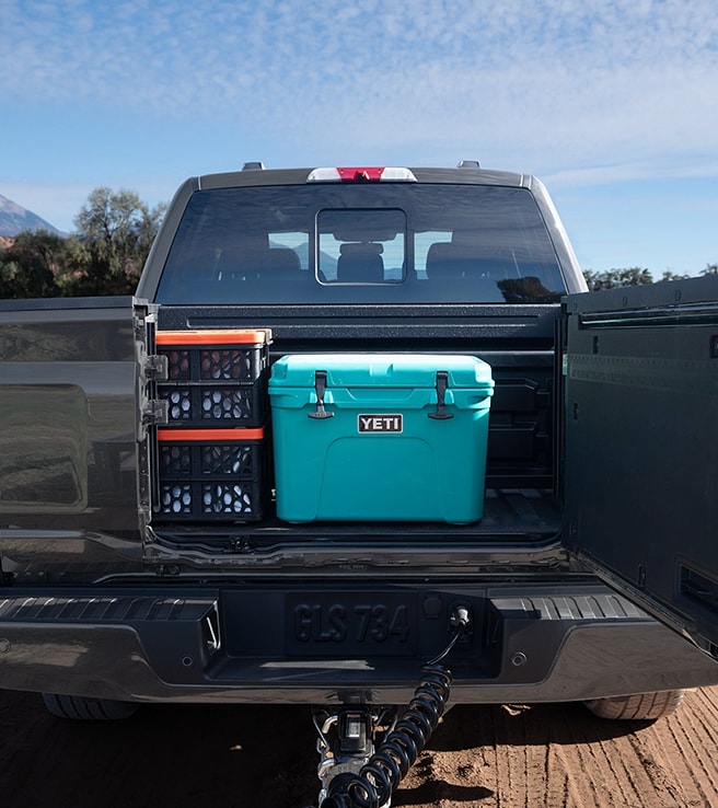 Even in locations where an outlet isn't accessible, you'll have electrical juice at the ready, and up to an available 7.2 kW of usable power. Multiple outlets are integrated into the truck bed.